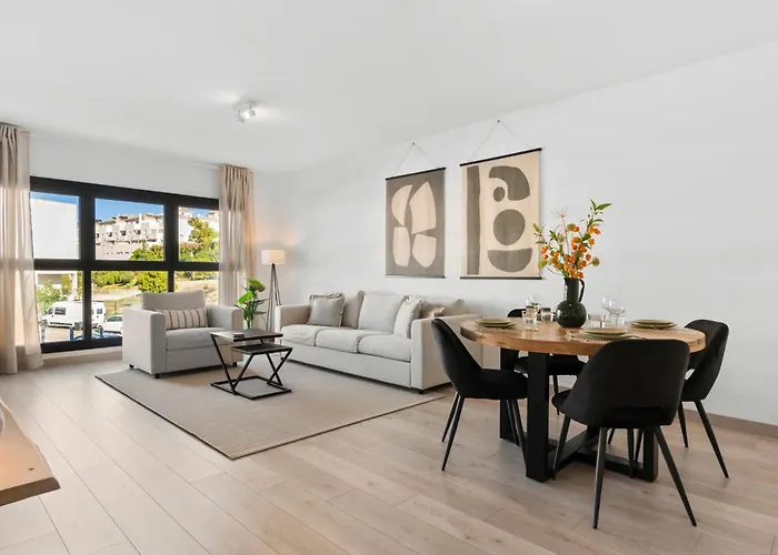 The 2-room Beautiful 2-Bedroom Apartment Near Center And Beach Estepona is located only 500 metres from the Poetry Route and 3.3 km from Laguna Village Shopping Centre. While staying in this 76 m² apartment, guests can visit the modern domed garden "Estepona Orchid House", which is just 8 minutes' walk away, and enjoy views of the mountain or chill by a swimming pool.